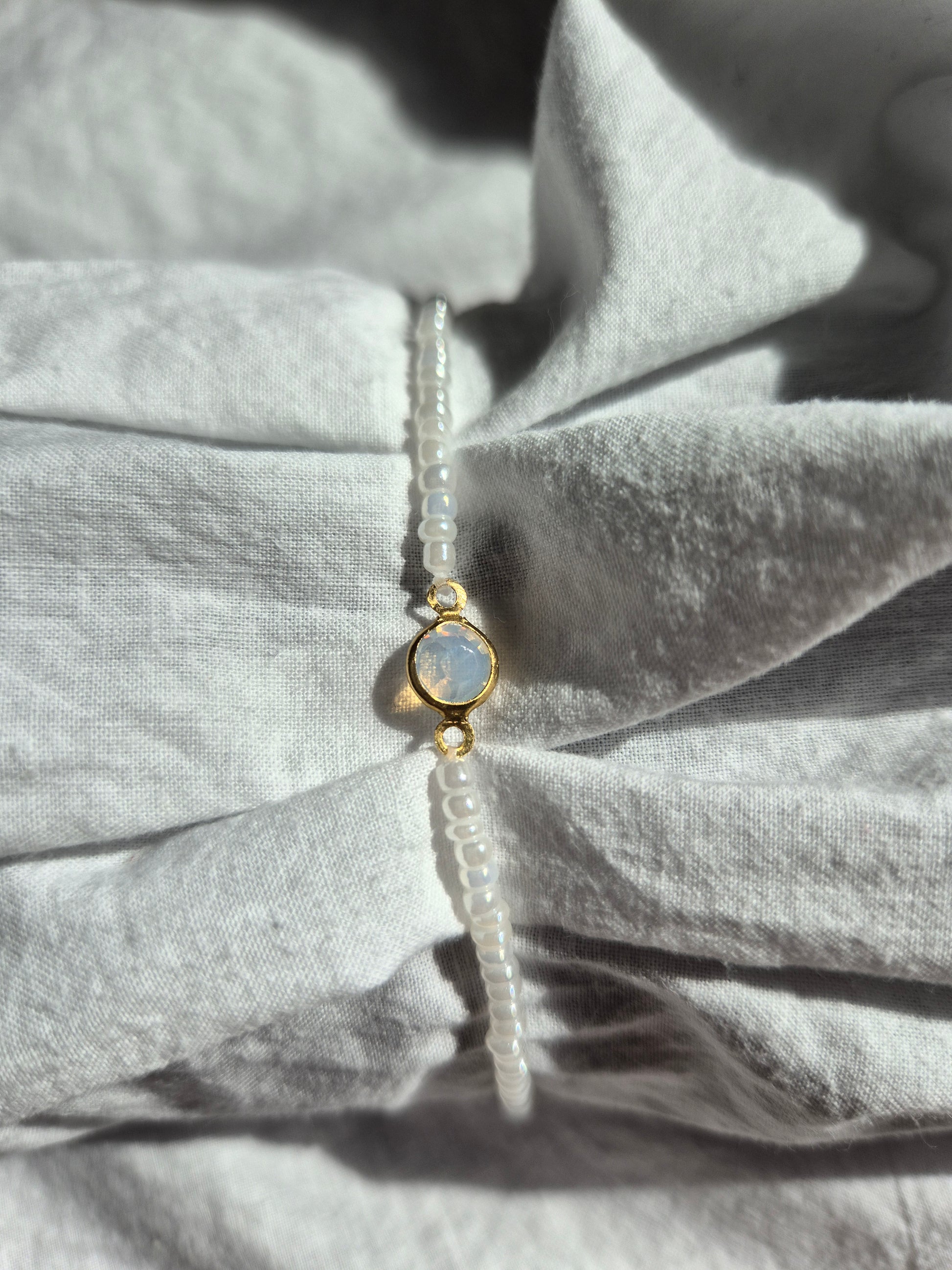 Armband aus Glasperlen in den Ausführungen Weiss, Hellblau, Türkis und Grün.